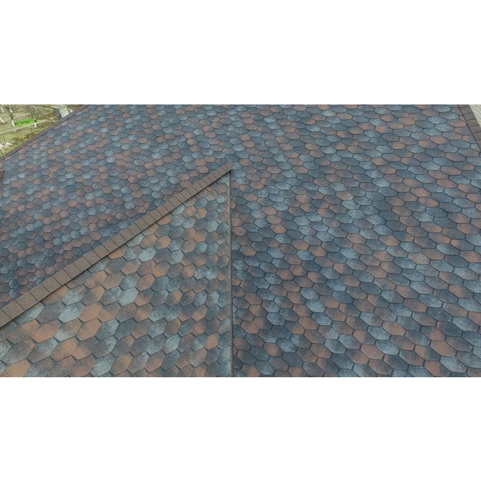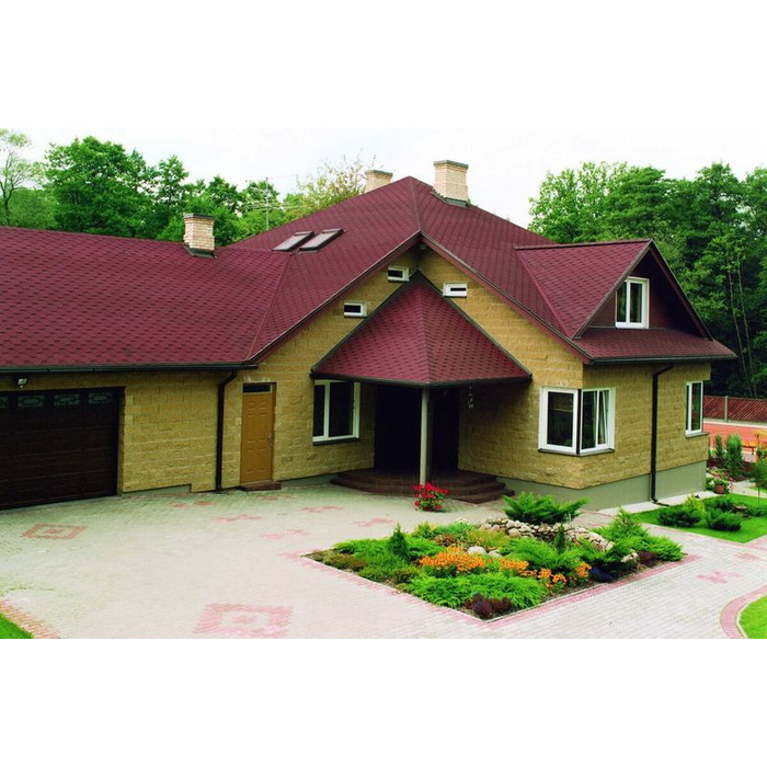 Изготавливается она из битумного полимера SBS (стирол-бутадиен-стирол), что придает мягкой кровле водонепроницаемость и эластичность. Верхний слой этого материала состоит из цветной минеральной крошки, придающей ему неповторимые оттенки и делающей его поверхность шероховатой. Благодаря наличию инновационной самоклеющейся системы после монтажа гибкой черепицы стыки швов становятся герметичными. В продаже черепица торговой марки Катепал представлена несколькими коллекциями и большим разнообразием цветов. Каждая коллекция представлена готами определенной формы и размеров. Вес 1 м2 такой черепицы равен всего 8 кг.