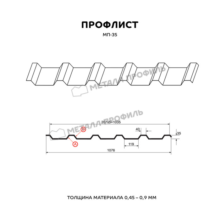 Профилированный лист МП-35х1035-B (ПЭ_Д-01-3005-0,45) Показать информацию